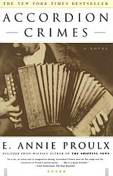 Product Description Accordion Crimes opens in 1890 in Sicily as an accordion maker completes his finest instrument - nineteen polished bone buttons, sleek lacquer - and dreams of owning a music store in America. He and his eleven-year-old son, carrying little more than the green accordion, voyage to the teeming, violent port of New Orleans. Within a year, the accordion maker is murdered by an anti-Italian lynching mob, but his instrument carries Proulxs story into another community of immigrants, the German Americans, founding a town in Iowa. Again, the accordion is witness to an astonishing array of tales