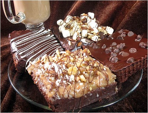 Buying Four of our decadent flavors of brownies: Fudgy Black Forest, Great German Chocolate Cake, Rocking Rocky Road and of course our Chocolate Chocolate Chip, there are chocolaty brownies for everyone and every taste! Brownies come packaged in 8" x"8 gift trays, and each tray of brownies weighs about 1.5 lbs. You will receive one tray of brownies of each of the four types (that's about 6 lbs. of gooey brownie goodness). Each tray can be cut-up into 4 large 4"x 4" brownies. sale