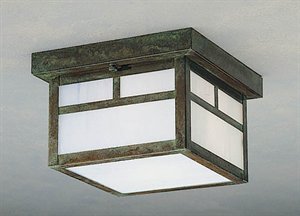 Ornamentation:No Overlay, Finish:Bronze, Glass/Mica:Tan, Light Bulb:(2)60w A19 Med F Incand Reminiscent of California Mission Revival and Southwestern architecture, which is both solid and enduring, this 8' flush ceiling mount meets the test of time.